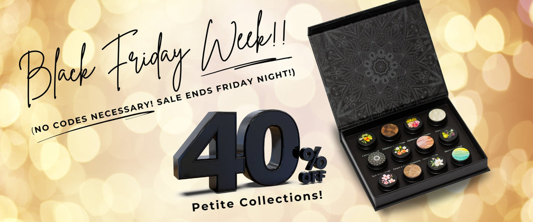 Our beloved Petite Collection (Discovery Set) is far and away our best-seller! Each beautiful box features 12 gorgeous scents, each in their own petite jar, with multiple applications per jar. The jars are removable so you may take them with you throughout your day to reapply and test out your scent (layer your scents for extra fun!).